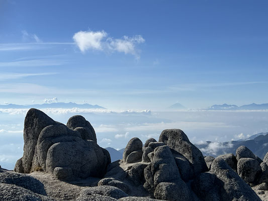 天候が不安定な週であっただけに、まずまずの天候に恵まれました。御嶽山、焼岳、笠ヶ岳は見ることができましたが、北アルプスの主峰の上部は雲に覆われてみることができませんでした。この時期の天蓋山からは残雪の残っている北アルプスの山々を見ることができるはずでした。またの機会としましょう!