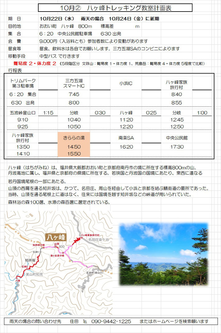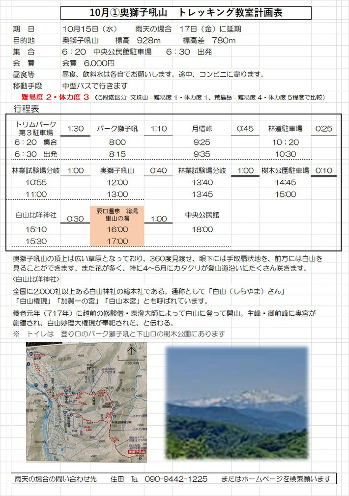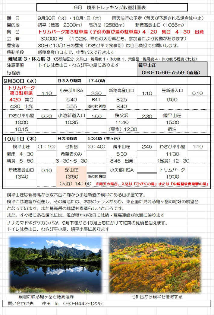 9月トレッキング教室の日程